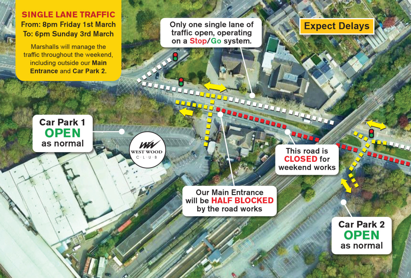 · Our Main Car Park entrance is 50% blocked by the works but cars can still use it for entry and exit.