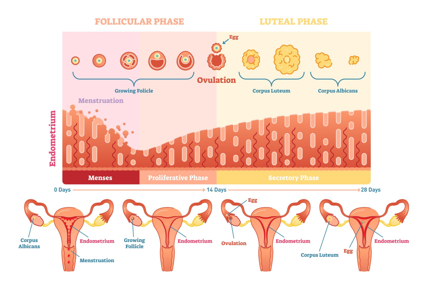 Your menstrual cycle starts on the first day of your period and ends when your next period begins. Usually, this is 28 days, but it can vary. Within your cycle, there are three phases: the follicular phase, ovulation and the luteal phase.