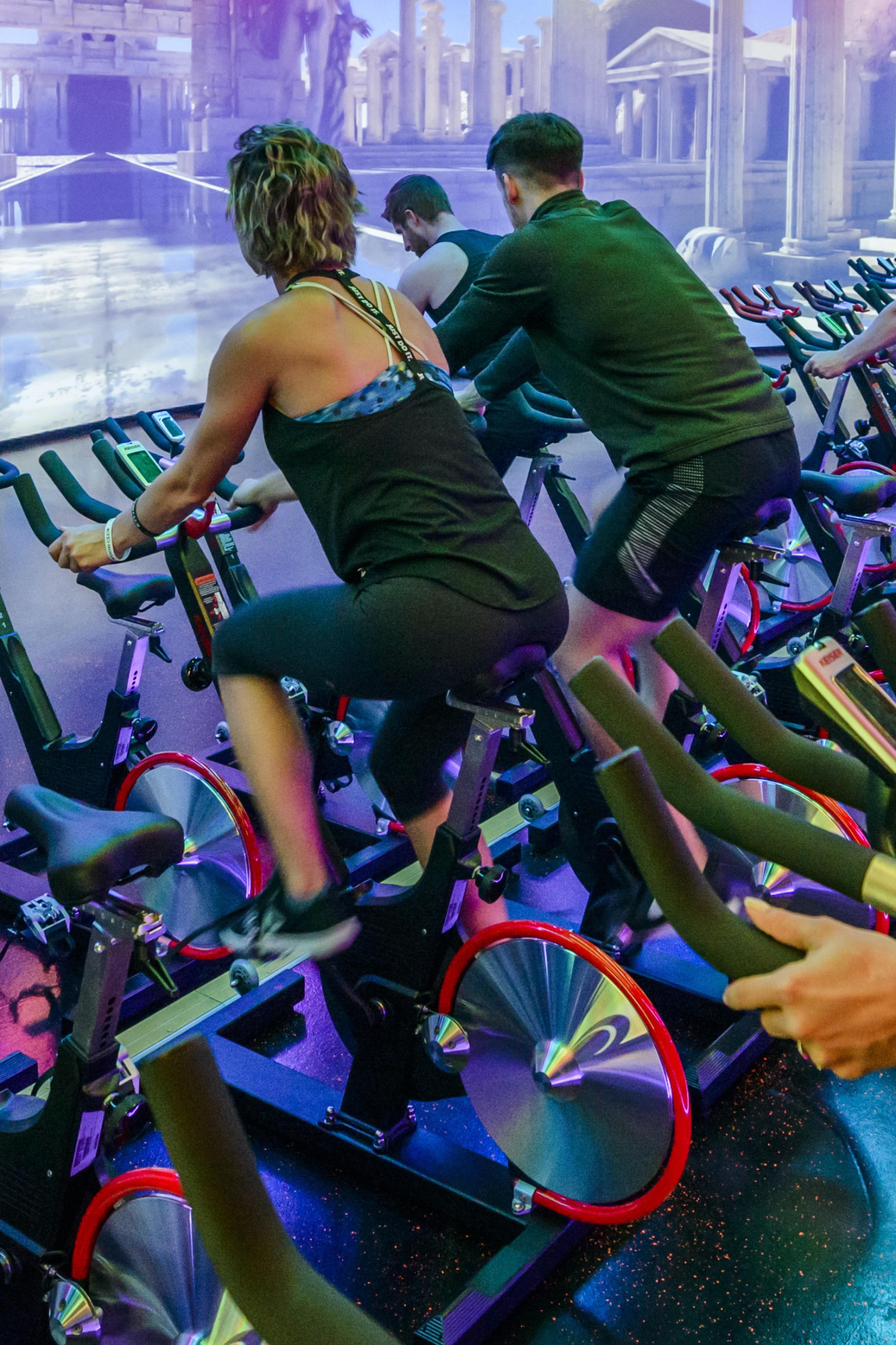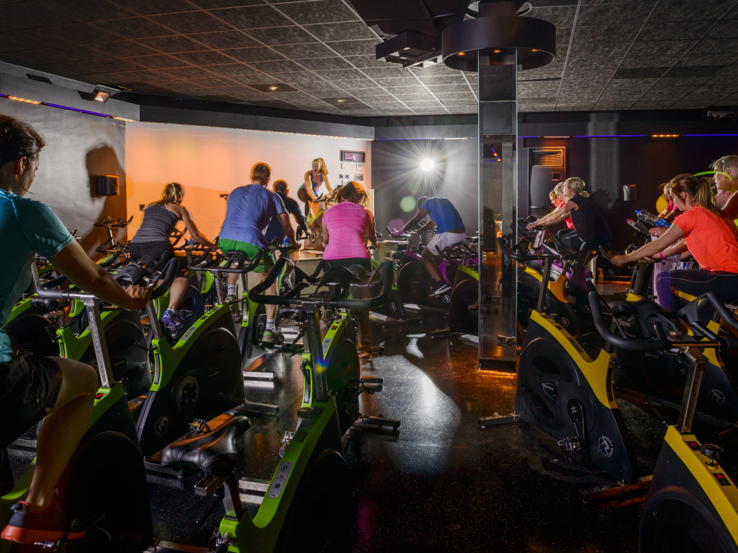 Group cycling studios. Spinning classes.